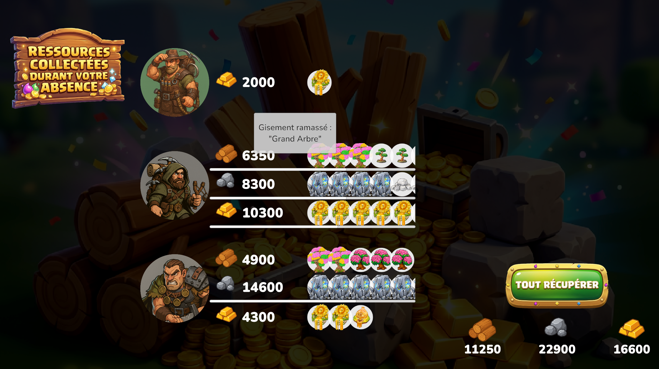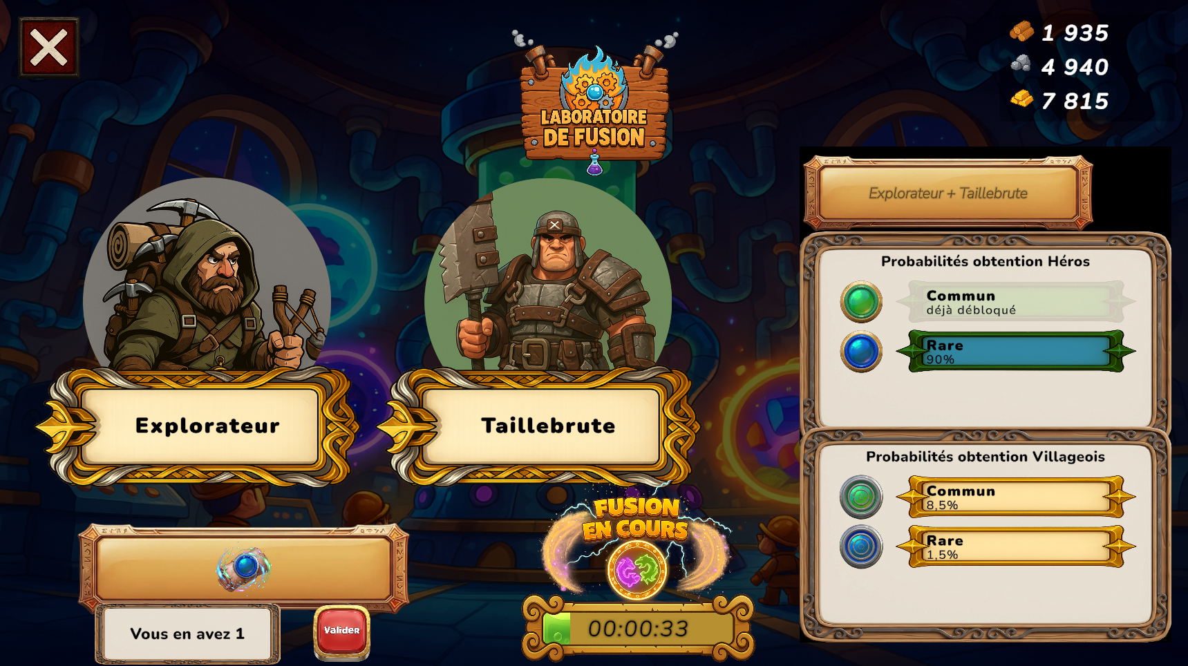 Jeu de Gestion de Village, où fusionner ses héros est nécessaire au développement du village.